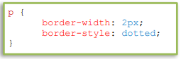 it creates a single solid line border. But there are a lot of values that can be used for border-style. It could be none (no border), dotted (series of dots), dashed (series of short lines), double (two solid lines) and many more. Just like border-color,