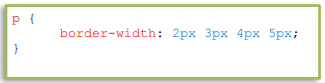 border-width – it specifies the width of an element border. The value of this property can be set in using length (px, pt or cm) or set to thin, medium or thick. Each side of the border can also have different widths. If there is only one value for the width, it means all sides of the border will have that width value. However, if there will be two values, the first value corresponds to the top and bottom while the second value corresponds to the left and right. If 4 values are given, each value corresponds to top, right, bottom and left side of the border, respectively.