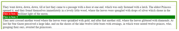 <div style="background-color:green; color:white;"> This is box 2</div>