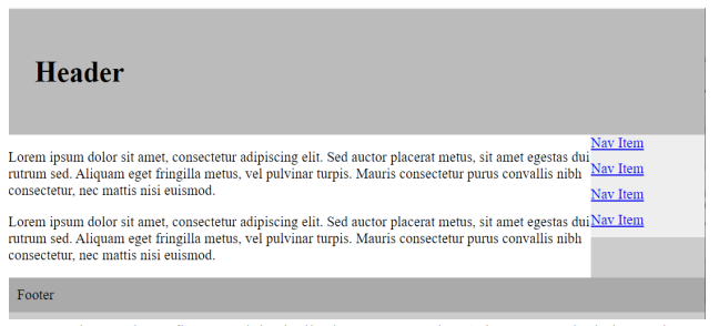 a two-column webpage with the content area on the left, navigation on the right, and a header and footer
