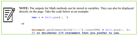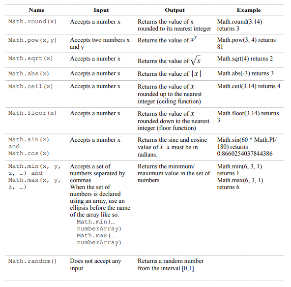 Listed below are some Math methods that we will use in class: