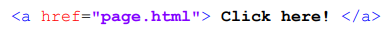 Remember that the HTML code for a link is given in the line below. href contains the filename or section name of the page that you want to lead the user to. The text between the <a> and </a> tags is the visible text that is clickable. Note that the clickable area can also be an image.